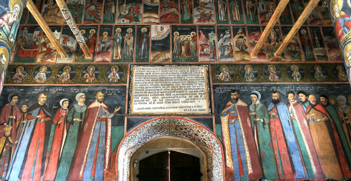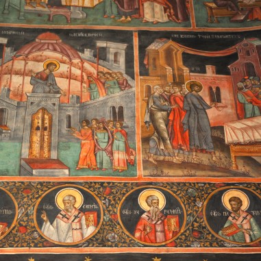 Pe lângă iconografia religioasă, întâlnim și compoziții cu caracter laic, cum e istoria ilustrată a vieții împăratului Constantin cel Mare, cu o anumită semnificație pentru vremea aceea, biruința Crucii asupra semilunii.