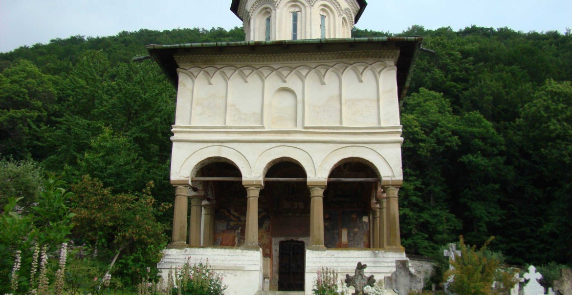 Naosul este în formă de patrulater, având în colțuri pilaștri cu baza pătratăa pe care se sprijină cele patru arcuri dublouri care susțin prin intermediul pandantivilor turla largă, de propoții reduse. Pridvorul, de formă dreptunghiulară, se sprijină pe șase coloane din piatră, fără decor, cu baza octogonală. Sunt legați prin arcade semicirculare. Boltirea s-a făcut cu o calotă rezemată pe arcuri laterale, sprijinite pe console. Acestea sunt mai largi și se întind până la pereții laterali ai pridvorului. În exterior, biserica este așezată pe un soclu larg profilat. Fațadele sunt împărțite de un brâu, simplu, rotund, în două registre compartimentate în panouri dreptungiulare în partea inferioară și în panouri terminate cu arcaturi fine întretăiate două câte două, în partea superioară. Cornișa este formată din cărămizi în formă de dinți de fierăstrău, iar ciubucul de sub streașină este asemănător cu cel de la biserica mare și de la paraclis.